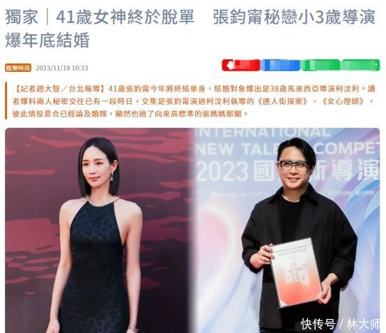 11月18日,据台媒报说念,女星张钧甯本年会戒指只身,在年底步入婚配殿堂。而张钧甯的改日老公就是网剧《唐东说念主街探案》的导演柯汶利,男方比她小三岁,两东说念主是才子佳人稀奇登对。
