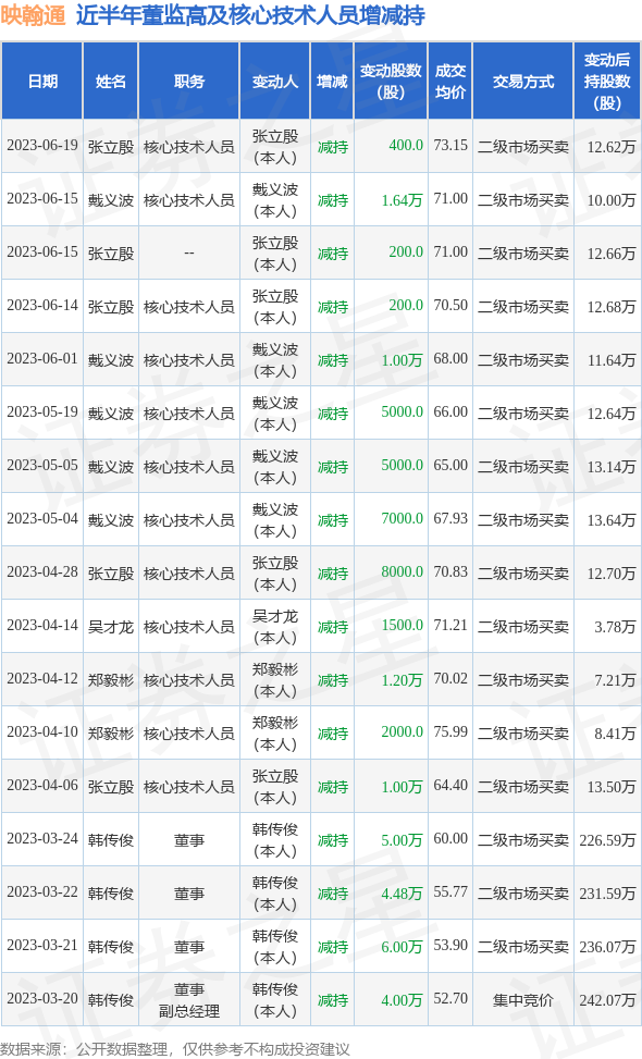 映翰通近半年内的董监高及中枢时刻东说念主员增减握确定如下:
